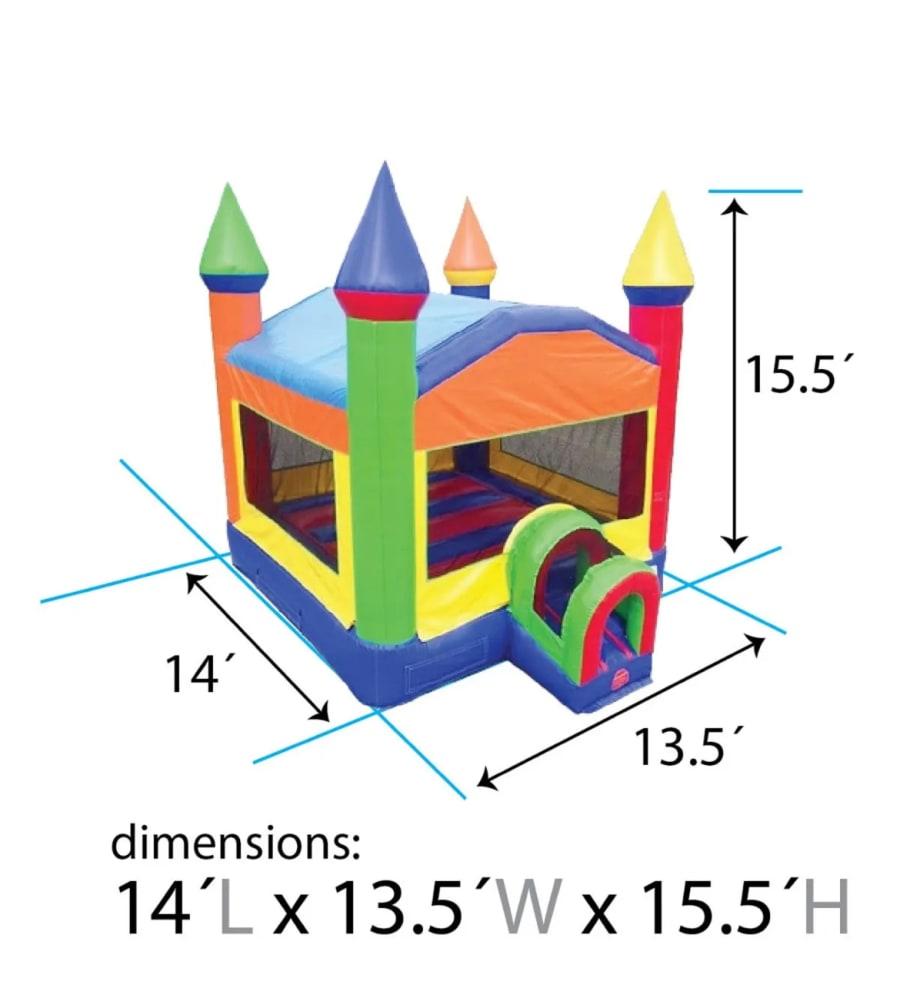 This is our Rainbow Big Bounce house. It is one of our larger units at 14x14 it is perfect for all events and can withstand the weight of most adults and kids. It is equipped with an awesome basketball hoop and comes with an inflatable basketball. Don’t miss out on this incredible unit that is sure to have your next event a success 😉😉