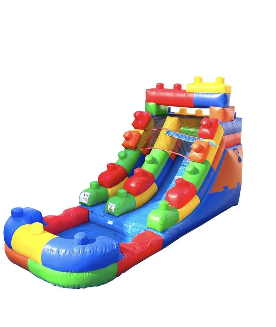 Introducing our 12 ft Lego water slide. Perfect for any event!!! This water slide we definitely keep you cool in this Florida heat 😎💦💦. Excellent for all ages and can be used wet or dry.